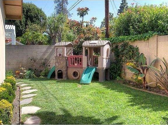 Awesome remodeled single story home ! Extensive use of flagstone and rock hard scape with custom wrought iron gate. Extended front with HUGE living and dining room & hardwood floors through out. Both secondary bedrooms have been expanded and the master as well with vaulted ceilings, sitting area, 2 closets one a large walk in with cedar. Updated master bath with granite. Secondary bath has newer vanity and marble and a jetted tub. Fabulous updated kitchen with maple cabinetry, granite and stainless steel appliances, wine refrigerator, pantry, pullout shelves & lazy susan. The kitchen opens up to the beautiful backyard with new drainage, custom hard scape of flagstone and rocks with builtin in BBQ & gas fire pit. This home also has ne