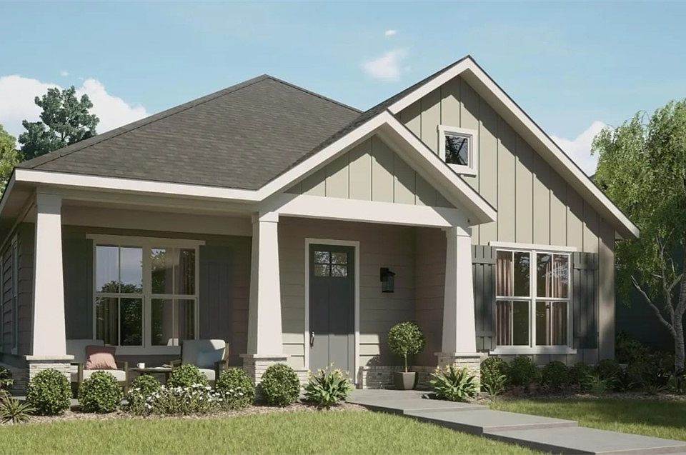 This floor plan is a single-story, open-concept design that features either a charming porch or an uncovered courtyard at the front of the home. You enter into a spacious living area, perfect for entertaining guests or relaxing with family. A patio right off the dining room creates the perfect indoor-outdoor living space. The kitchen offers plenty of counter space and has a beautiful island centered in the room for more casual dining. On the opposite side of the home are 3 bedrooms and 2 bathrooms. You can enjoy a study close to the owner's suite for privacy or as a flex space for whatever your heart desires. The secondary bedrooms are all nicely sized, with plenty of closet space. The Poppy offers a practical design that maximizes living areas while providing a warm and cozy atmosphere.