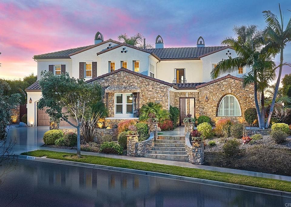This magnificent ocean view home sits on one of the largest lots in prestigious La Costa Greens and is a masterpiece that redefines the standard of luxury living. The main level has been redesigned to capture the quintessential California lifestyle of seamless indoor and outdoor living. A private courtyard welcomes you into the house and once inside you step into an open concept living space with multiple LaCantina Doors that essentially open the back of the house to sweeping views of the ocean, the acclaimed Omni La Costa golf course, and the canyon upon which the house sits on. The centerpiece of this extraordinary living space is a center island kitchen, blending seamlessly with a breakfast area and an expansive family room with a stacked stone wall and electric fireplace. The main level flows into a private backyard that has been meticulously designed as an entertainer’s paradise with resort style feel, perfect for hosting family and friends. This backyard oasis features a saltwater pool and spa, fire pit seating area, two waterfalls, a bocce ball court, putting green, and a California room equipped with an outdoor Sunbrite t.v., a built in BBQ, pizza oven, two drink refrigerators, a kegerator, and a fireplace. The ultra-lux primary suite encompasses the entire west side of the home on the second story and features five distinct spaces including a deck that offers panoramic views of the ocean, golf course and even snow-capped mountains to the North East. You will enjoy the fireworks from multiple townships without ever leaving your yard. The primary bedroom boasts a romantic fireplace and views of the ocean. Just off the bedroom, you will find an inviting retreat area with fireplace, bar, drink refrigerator, and access to the expansive deck. The remodeled primary bathroom boasts a steam shower, freestanding tub, and dual floating vanities. Lastly, an additional flex room could make the perfect office. Two additional bedroom suites with refinished bathrooms and a spacious loft (optional 5th bedroom or movie room) with built-in speakers complete the upstairs. A bedroom suite is conveniently located on the first level along with a bonus room that opens into the backyard and can serve as a great workout room. Other features include owned solar (electric bill has averaged less than $1 per month since February 2022), a 4-car garage, whole house standby generator, newer dual AC units, porcelain tile floors, plantation shutters, recently resurfaced pool, newer pool equipment, and extensive outdoor lighting. Privacy abounds on this property that backs onto a canyon, lined with tall hedges that border the house and its neighbors, allowing you to enjoy your own private resort which you will never want to leave. Residents also enjoy "The Presidio" with Junior Olympic pool, clubhouse, fitness center, pickleball and tennis courts. Minutes to beautiful beaches, great restaurants, shopping and world class golf. Truly a must see property that won’t last long.