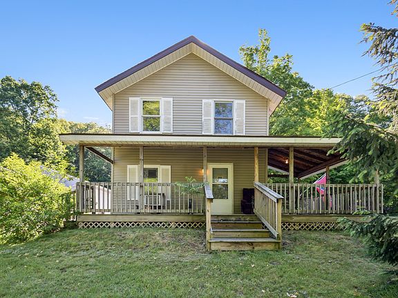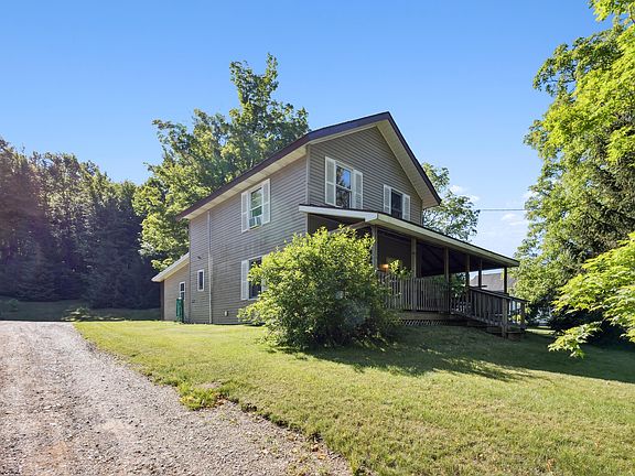 This turn of the century home features big wrap around porch, spacious kitchen with kitchen appliances included, formal dining room. Main floor laundry with Washer & Dryer included. home was gutted and completely remodeled 25 years ago per Seller. Also 60' x 36' barn 16' high partially insulated with 220 electric, cement floor, air compressor, heat, loft storage & lein-to storage off barn ( Would fit most motorhomes or big trucks). Also 3 car detached garage. Beautiful acreage high & dry!