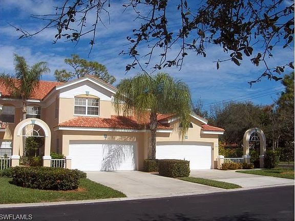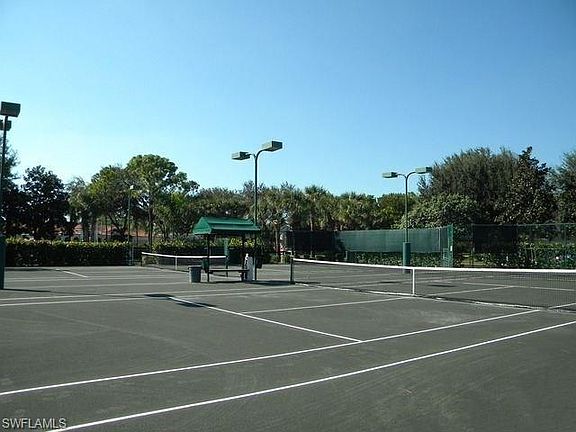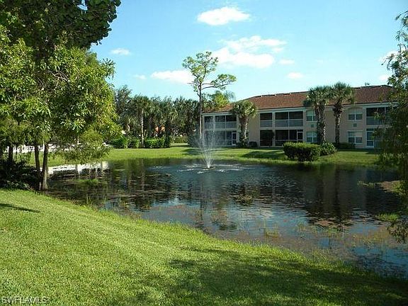 RARELY AVAILABLE 3 BEDROOM GROUND FLOOR CORNER UNIT WITH 2 CAR ATTACHED GARAGE! Immaculately maintained lake view Condo with large lanai. Electric Hurricane Shutters on all windows and lanai. New carpet in the living/dining area. Hardwood in the master bedroom, and kitchen, with new pendant lighting in kitchen! In Popular gated community of Calusa Bay, built around lakes with island bird sanctuaries, fishing pier, perimeter nature walk, health club, picnic areas, sun deck, 20 m lap pool in addition to swimming atrium and spa. Unit is conveniently located with just a quick walk to the pool and tennis courts! This great community is located close to beach, Mercato, Library, upscale shops and great dining. A very friendly active community!
