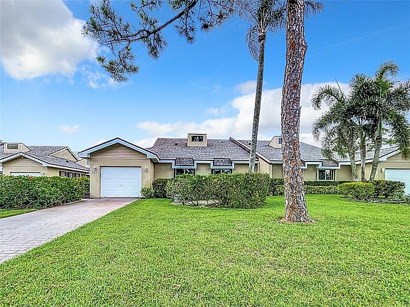 Fantastic 55+ gated Golfing community. This exquisite villa features three bedrooms, two and a half bathrooms, a 1-car garage, and a long driveway for convenient parking, ensuring accessibility. Upon entering, natural light floods the interior, creating a warm and welcoming ambiance. The open floor plan amplifies the sense of space, complemented by soaring volume ceilings that add a touch of grandeur. The living room, adorned with sleek marble flooring, is a versatile space for elegant gatherings and relaxed moments. Safety: Gated community with 24/7 security patrol. New Roof 2021. This community promises a safe lifestyle where comfort meets sophistication, offering a haven for a family that wants a tranquil community and playing golf all year long. SEE BROKER REMARKS FOR ADDTNL INFO.