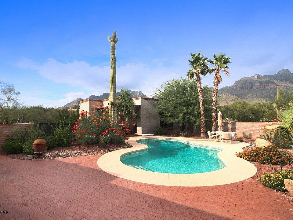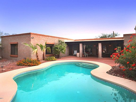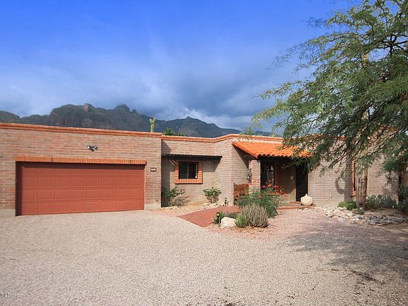 For more information on this property, contact the Listing Agent, Frank Morgan at (520) 665-3065 or FrankMorgan@LongRealty.com. Southwest Classic in the perfect Foothills setting! Burnt adobe Territorial-style home with fantastic newer 2bed/2bath guest house to match! 3bed/2.5bath main house with Saltillo tile throughout, Talavera tile countertops, and newer appliances. Rear pool area with deep covered porch, brick patios, and very good mountain views. Substantial guest house built in 2004 with scored/dyed concrete flooring, Talavera tile countertops and sinks, custom cabinetry, and mountain views from living and north bedroom. Separate side-yard access (or through pool area) to guest house for additional privacy. This is your Southwest desert-living opportunity!