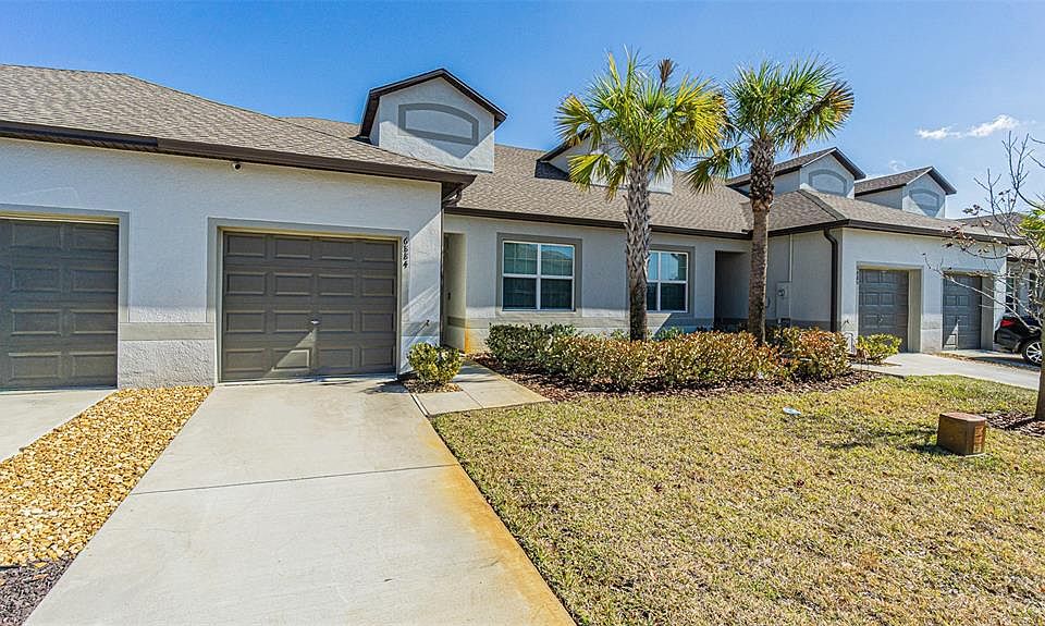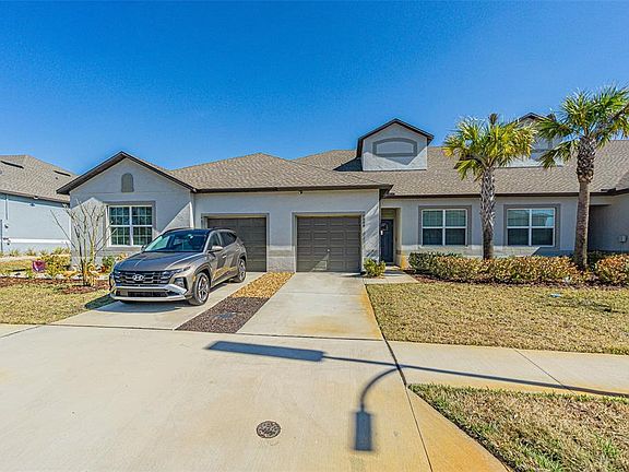 Experience easy, resort-inspired living in this contemporary villa located within the gated community of Abbott Square. Featuring 2 bedrooms, 2 bathrooms, and a generously sized bonus/flex room, this home offers a functional layout designed for both comfort and flexibility. The modern exterior sets the tone, welcoming you into a bright, open interior that blends the living, dining, and kitchen spaces into one cohesive gathering area. The kitchen is thoughtfully designed with shaker-style cabinetry, granite countertops, and energy-efficient appliances, creating a space that’s both stylish and practical for everyday living and entertaining. Adjacent to the kitchen, the primary suite serves as a private retreat with luxury tile flooring, a walk-in closet, and a well-appointed en-suite bathroom featuring dual vanities, a spacious walk-in shower, and sleek, modern finishes. A secondary bedroom is positioned near the laundry area, offering added privacy and versatility for guests, a home office, or additional living space. Durable tile flooring throughout enhances both style and functionality. The dedicated laundry room includes a washer and dryer, adding everyday convenience. Outdoors, enjoy a private backyard with lush landscaping perfect for relaxing and unwinding without the burden of maintenance. The HOA provides internet, lawn care, exterior maintenance, and pest control, allowing for a truly low-maintenance, lock-and-leave lifestyle. Residents of Abbott Square have access to an impressive selection of amenities, including an oversized resort-style pool, water splash park, fitness center, grilling areas, scenic walking trails, picnic spaces, gazebos, and more offering endless opportunities to enjoy Florida’s outdoor living. Ideally situated near shopping, dining, gyms, malls, and major highways, this move-in-ready villa delivers the perfect balance of modern design, convenience, and lifestyle. This is a turnkey opportunity you won’t want to miss schedule your private showing today.