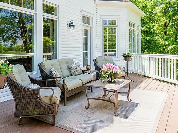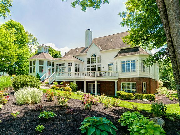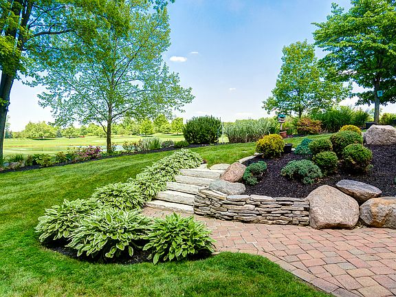 LOCATED ON THE LAKES GOLF AND COUNTRY CLUB'S 18TH HOLE...Sitting on over an acre with mature trees and awesome views of the golf course, this stunning estate home invites you in with an open living floor plan featuring soaring ceilings and tons of natural light. The 2-story great room and large formal dining room are perfect for a tournament party or a large family holiday get together. The spacious kitchen/hearth room wing includes island seating, full breakfast dining and sitting area that opens to the 2-tiered outside living's deck and patio or the attached 3 season gazebo. Privacy abounds with a spacious 1st floor owner's suite, 2 bedrooms and loft upstairs and a 3rd bedroom, full bath, family room, study and workout room in the walkout lower level. 5 car garage capacity!!!