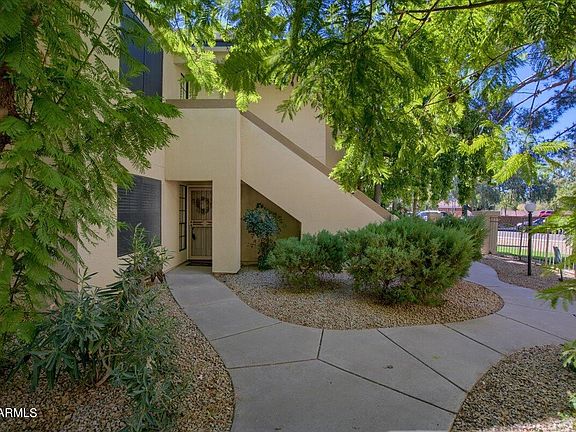 You'll love this 2 bed, 2 bath, ground floor unit in the gated community of Mariposa Scottsdale Condominiums. Condo is in prime location, w/ pool side views from your spacious covered patio & steps from the community center & workout facility. Once inside enjoy fresh paint & beautifully updated fireplace in your living room, w/ formal dining area & kitchen close by, making it great for entertaining. Kitchen featuring granite counters, SS steel appliances & plenty of cabinet space. Condo also boasts desired split bedroom floor plan, custom window shutters throughout, ceiling fans, crown molding & NEW AC IN 2019. Mariposa Scottsdale Community is in an ideal location between Kierland & Old Town Scottsdale, close to shopping, restaurants, grocery & all within walking distance. Won't last long!