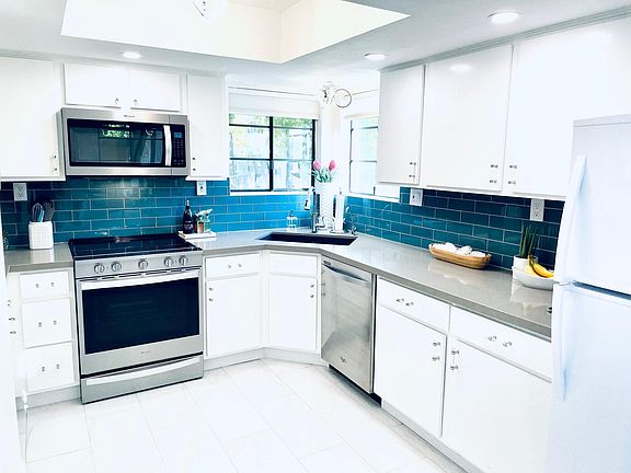 Newly remodeled beautiful pool side ground level condo in a gated quiet complex with your own covered parking space & plenty of parking!! New appliances & brand new porcelain tile from Italy, high end furniture & home is completely furnished to the 9s! There is a new "RO" water filtration system installed for drinking water. Condo is very quiet and relaxing with new high end mattresses & a great office area that can open up to the living area. All professionally designed.