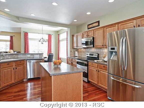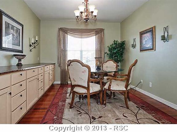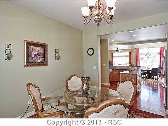Better than a model Impeccably kept Beautifully decorated Energy efficient semicustom home Move in ready Private Convenient location Pikes Peak views AC Humidifier wired for a security system Internet 10 ceilings Brazilian Cherry floors Corian cntrtps Oak cabnetry storage lg kit wislnd brkfst nook Separate Dining rm Gas fireplace in living rm Walkout onto lrg sculpted patio wgazebo ntrl gas outlet for bbq Auto sprnklrs Lrg Mstr Bdrm w5 pc bath walkin closet dbl slider closet Upstairs is open with a large area to relax or could be used as an office area as it has 2 separate hookups for internet 2 bdrms a full bath Downstairs you will find a spacious family room wgas fireplace storage area 2 bdrms a bath Sit on the covered front porch admire the beautiful view of Pikes Peak The 3 car garage is oversized is partially insulated finished Come see but hurry wont last long this is a one of a kind better than new home