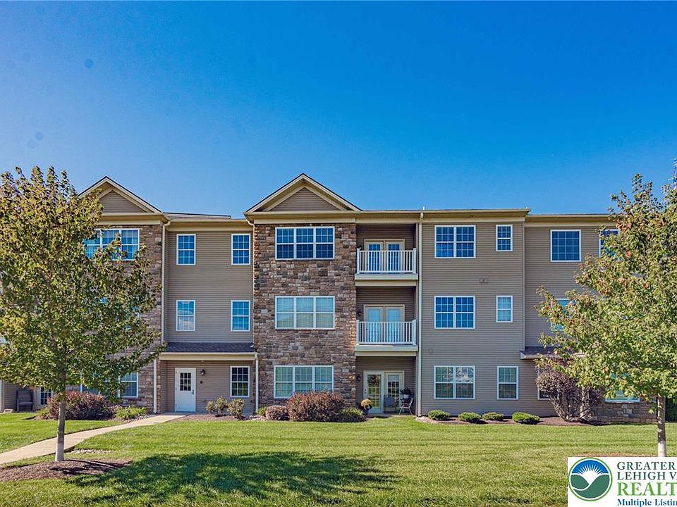 Penn's West, set within the sought-after East Penn School District. Enter through a private garage for hassle-free access to a well-kept lobby, and an elevator to access to your personal retreat on the 3rd floor. Inside, discover an abundance of natural light illuminating sleek luxury vinyl floors that pave the way through a modern, open-plan design. The living and dining area offers a versatile space perfect for entertaining guests. Enjoy the lovely covered balcony. This personal outdoor haven presents stunning mountain vistas the perfect panorama for savoring your morning coffee or evening unwind. The kitchen with convenient breakfast bar, ample cabinetry, and a spacious pantry for all your storage needs. This home is thoughtfully designed with two large bedrooms, each featuring extensive closet space, and a fully equipped laundry room strategically positioned for ease of use. The primary suite is especially luxurious, crowned with vaulted ceilings and bathed in light, featuring a walk-in closet and an exclusive en-suite bathroom that promises a serene escape from the everyday. Living here means more than just enjoying a beautiful home it's about embracing a lifestyle. Take advantage of community amenities including a swimming pool, clubhouse, gym, and sport courts for basketball and tennis, all maintained for your enjoyment. Join us at Penn's West, where every detail is tailored to ensure you live effortlessly.