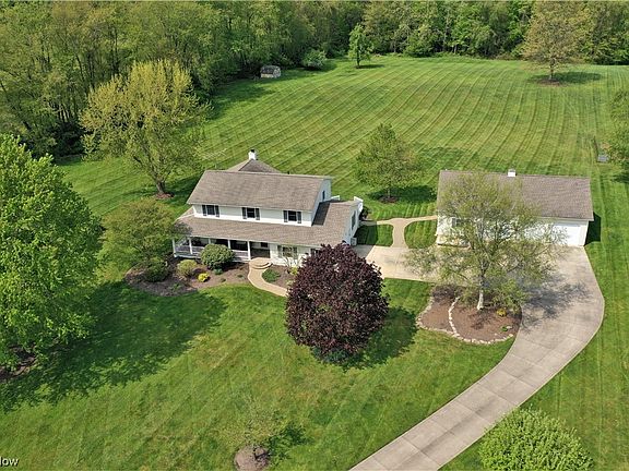Welcome to 6885 Red Brush, located less than a mile from the Portage County Bike & Hike Trail! Enter via a full concrete driveway to the home and detached 4 car heated garage. The rolling landscape behind the home extends to a tree line where the 2nd half of the property extends back and is fully wooded and abuts to Towner's Woods! 2 apple trees, a pear tree and a peach tree that produce fruit each year will be found in the front and back yards along with a shed in the back yard. Relax and enjoy the serenity of the wrap around front porch. Great space for napping, bird watching or gathering with family and friends. For main floor living, a large family room with wood fireplace and gas starter is at the rear of the home overlooking the backyard. Bose surround sound speaker system conveys. An office adjacent to the kitchen opens to the back deck. Upstairs, brand new carpet in the master bedroom in March 2023 along with fully renovated master bath as well as the 2nd full bath, also fully