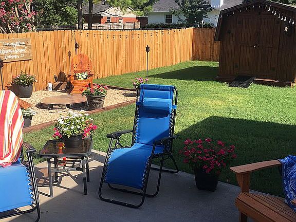 Beautiful transition with inside and outside renovation that provides a stark contrast from original purchase. Natural lighting throughout living area thanks to opening living room and private seating area. Plantation shutters accent farmhouse white outside surrounded by new stained fence with metal post. Fire pit provides relaxing environment throughout year with the beauty of an open commons area to the east. Just fifty yards from Tulsa’s best neighborhood swimming pool. Tennis courts just around the corner. Lafortune Park just a miles walk away.