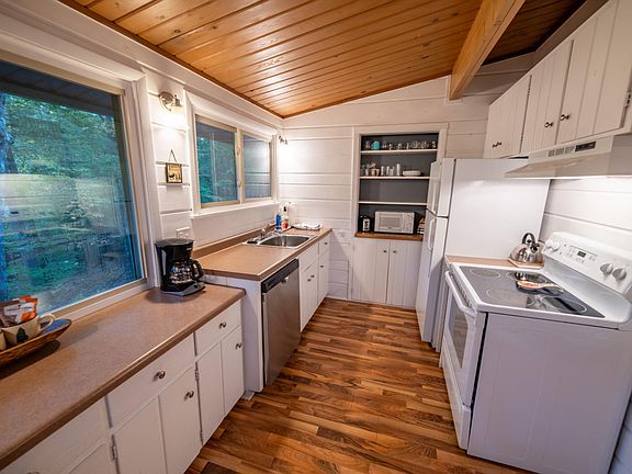 Year-round fantastic 3 BD/2BA with the warmth of a summer cottage! Nestled on 1.69 wooded acres just south of Three Lakes, property has 100' of southern exp sand frontage on full recreational 276 acre Virgin Lake! Completely updated & offers an open living area w/a brick wood burning FP, Galley style kitchen, laundry room, cedar interior w/cathedral ceiling, lakeside wall of windows for gorgeous views of the lake & wrap around deck for sunning and relaxing. Surrounded by Nicolet National Forest w/easy access to snowmobile, ATV trails & gold course nearby, in addition there is also a boat ramp to the Famous Three Lakes/Eagle River Chain of Lakes. There's a 2-car det. garage for storage. All furnishings include. In 2018 a 1,000 gallon concrete septic tank was added & 1/2 of the metal roof was replaced in 2021 and many, many more updates.