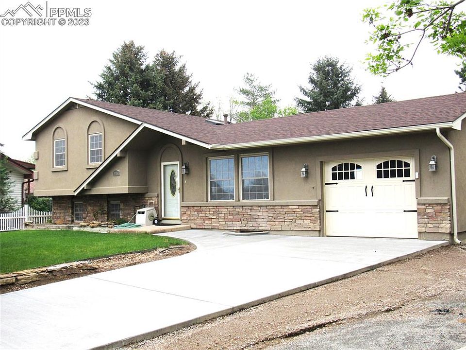 Great curb appeal! What a great opportunity for someone to build sweat equity. Seller just ran out of steam! Nicely landscaped with a brand new driveway, newer stucco and brick veneer exterior and garage door. The interior features your traditional main level floor plan with LR, DR & Kitchen with eat-in counter bar. Upstairs you will find two bedrooms in addition to the master. Both upper-level bathrooms have skylights and the master bathroom has been nicely updated. On the lower and basement levels you will find unfinished square footage at various stages. The lower level is apx 22'x13' with an additional 5'x6' bump out, a fireplace-style pellet stove, and a rough-in 3/4 bath (not a standard shower pan). This level has a separate entry off of the back, so it could be used for mother-in-law quarters, or use your imagination! It has been drywalled and has a brand-new entry door. The basement level is more complete, having been textured and painted. It features a small craft or exercise room, a bedroom with new egress window and a second family room. So much opportunity here! The back yard is large and lovely with trees, unique water feature and fire pit. You will appreciate the workshop/storage shed! Auto sprinkler, front and back. Central air too. If you have construction skills, this one might be the one!