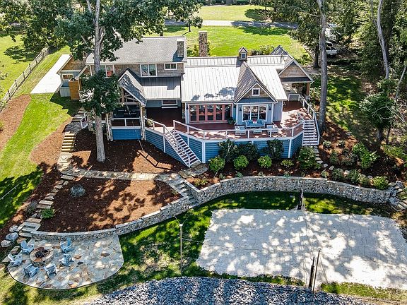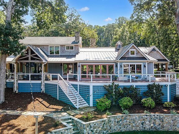 Every day is a vacation when you live on the lake!! You'll love this Gorgeous WATERFRONT home designed to enjoy the lake & outdoors, boasting serene LAKE VIEWS from nearly every room. This one of a kind property is loaded w/ character & thoughtfully planned custom finishes such as stone fireplaces, hardwood floors, custom moldings, reclaimed wood paneling, & vaulted ceilings. Engage your inner chef in the gourmet kitchen complete w/ SS appliances, quartz counters, & island. Main level primary suite features fireplace, stunning views, & luxurious spa-like bath. Upper level provides 2 additional BRs each w/ private designer baths. Relax on the fabulous wrap around porch, entertain on the lakeside patio w/ fire pit or beach volleyball court, enjoy boating & watersports from the covered dock w/ composite decking, boat & jet ski lift! Unfinished room above garage. No HOA & great Lake Wylie location close to shopping & dining.