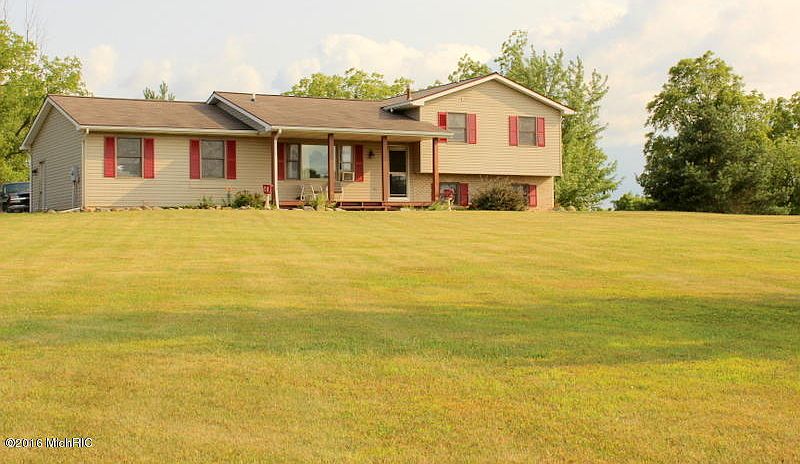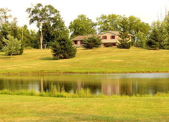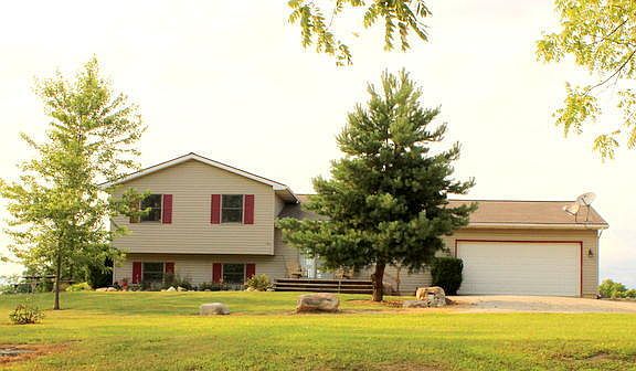 What a view on the covered deck, 10 rolling acres over looking private pond! Sit back and enjoy the nature. This beautiful country charmer, tri-level home offers a spacious kitchen with oak cabinets, wood flooring. Large recreation room. (3 acres tillable)