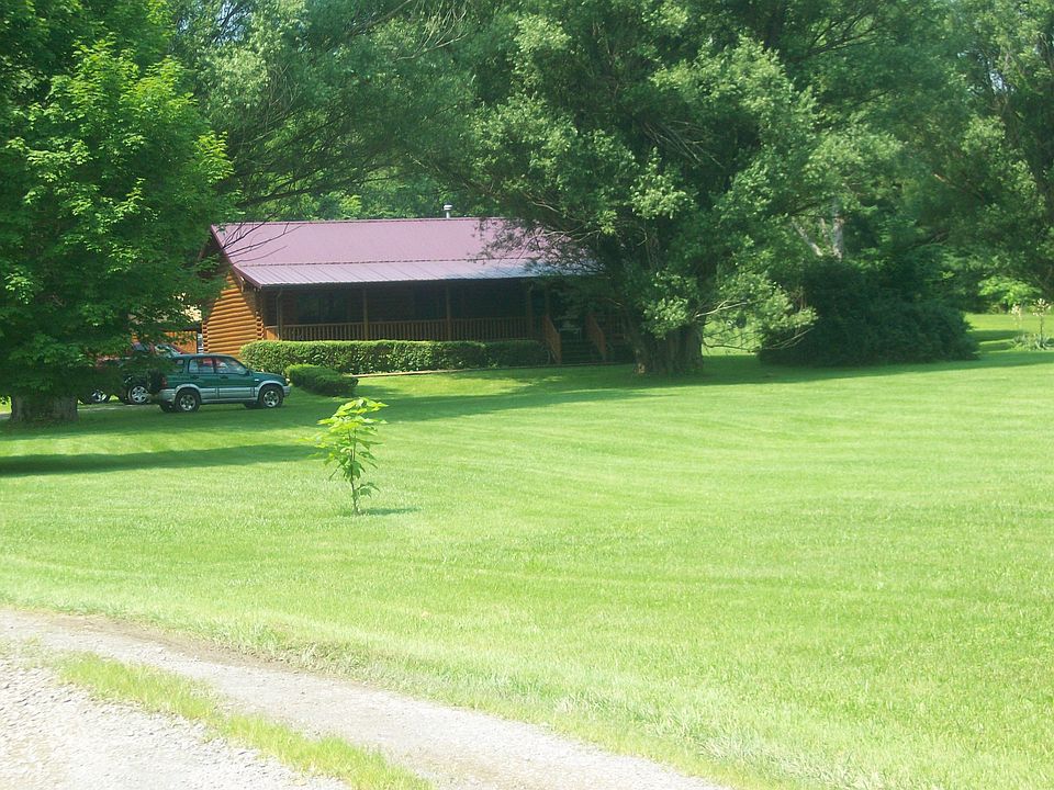 Log home, interior all T & G no drywall. Log profile siding on gables, with full front covered porch. Back deck with hot tub. 3 1/2 tree-lined private acres. Chained link dog pen