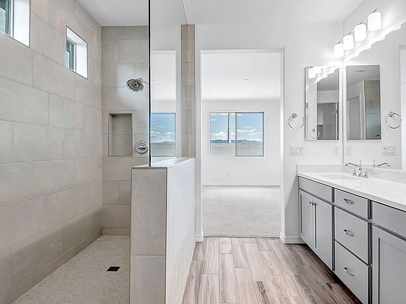 This LEED certified home features 3 bedrooms, 2.5 bathrooms, and an enclosed den, perfect to work from home. Entertain loved ones in your luxurious kitchen, featuring stylish stone colored cabinetry, Blue Galaxy granite countertops, full tiled backsplash, an oversized island, and built-in stainless-steel appliances. Host holiday meals in your formal dining room or enjoy a cup of coffee on your covered patio, complete with a 12 foot center sliding glass door for seamless indoor-outdoor living. Enjoy elegant design features, such as soaring 9 foot ceilings, 8 foot interior doors, and durable wood-look tile throughout with carpet in the bedrooms. Unwind in your private primary bedroom oasis, featuring an extended tile walk-in shower, dual vanity sinks, and a spacious walk-in closet. Amenities: Covered Patio, Oversized Pantry/Butler, Primary Suite on 1st floor