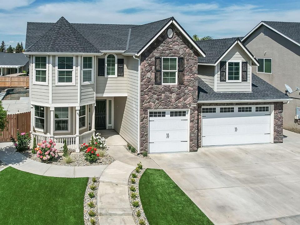 Located in a desirable Clovis Unified neighborhood with walking trails just around the corner, this beautiful Lennar home offers space, style, and thoughtful design throughout. The curb appeal stands out immediately with a well-landscaped front yard, charming exterior, and a spacious 3-car garage plus oversized side yards.Inside, you'll find a light-filled, open-concept layout with vaulted ceilings and upgraded wood-look tile flooring. The home features 4 generously sized bedrooms, 3 full bathrooms, a formal dining area, and a versatile flex room perfect for an office, playroom, or second living space. The primary suite is on the first floor and is oversized with vaulted ceilings, a custom walk-in closet, and an en-suite bath that includes backyard access.The kitchen is both functional and inviting, with granite countertops, stainless steel appliances, a large center island, and plenty of counter space. The laundry room offers extra storage, a folding counter, and direct access to the garage for convenience.Out back, enjoy a sparkling pool, large grassy area, and the potential for RV parking. Walking distance to Oraze Elementary School. Call/Text for your chance to see this home in person!