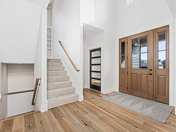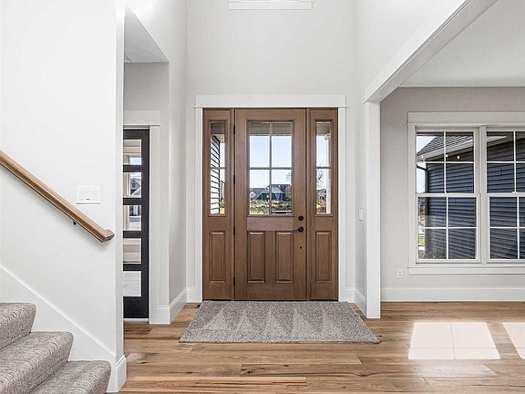 Fantastic Terry Knutsen Builder, NEW Construction Home located in the NEW Wilderness Pointe Subdivision within the Pleasant Valley School District! This home offers over 4200 finished square footage of quality craftsmanship & stunning finishes. The main level boasts hardwood flooring, large 2 story great room with coffered ceiling & the stained wood will match the flooring with white beams. Picture yourself viewing the two story fireplace with builtins. The fabulous kitchen with white farmhouse sink, black delta faucets including a pot filler over the range, quartz counter tops, large 10' hickory island, stainless steel Cafe Series Appliances & a hidden pantry with white cabinets & wood shelving. The remaining main floor consist of informal dining area, office, mudroom with lockers & laundry room. Beautiful Primary Bath with white cabinets, quartz countertops, zero entry 6’ walk in ceramic shower with cubbies & bench. Heading upstairs the staircase will have a built in bench and bookshelves on the landing. Upstairs will have an additional 3 bedrooms & 2 baths. The walkout lower level will have a rec room with a bar area with hickory cabinets, sink, under counter beverage center and microwave with granite countertops. There will be a large 8’ island with seating and storage, LVT flooring, fireplace with stone & the 5th bedroom & 3/4 bath. Don’t forget the 3 car garage (26 x 24 & 14 x 24) and loads of storage.