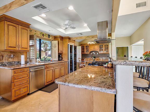 Enjoy your morning coffee or evening cocktails on the expansive patio overlooking lush fairways and mountain vistas. Residents of Cathedral Canyon Country Club enjoy access to resort-style amenities, including multiple pools and spas, tennis courts, and a championship golf course.