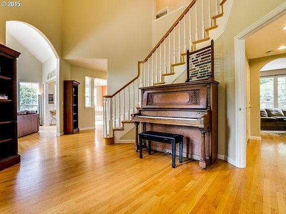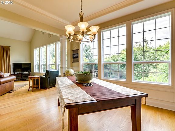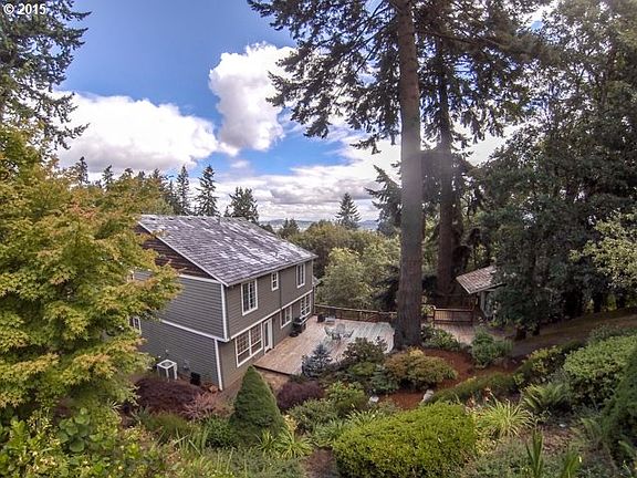 Breathtaking stonework and lush greenery frame this beautiful home located in West Linn. The meticulous landscaping was designed by a renowned landscape architect and previous owner of the home. Privacy and serenity reign supreme with this property. A pathway leading to a level grassy area is ideal for playing badminton or other lawn games in the summer! Outside the expansive deck lends itself equally for private relaxation or entertaining your friends and family. You will also find a charming detached cottage with a full bathroom. Use it as guest cottage, workout room, home office, art studio or whatever else you may desire.Crossing the threshold, a grand 2-story foyer welcomes you with it's winding staircase and sleek hardwood floors flowing throughout the main floor. The living room's high ceilings with a skylight, oversized windows with views of the treetops, and a gas fireplace, bring warmth, light and a sense of serenity to the room. The adjacent formal dining room featuring wainscoting and even more windows to provide views of nature during meal time. In the kitchen, granite countertops, a cooking island with a full size gas range, and elegant cabinets will inspire any cook!The main floor master suite with soft perimeter lighting claims the perfect environment for unwinding at day's end, enhanced by a walk-in closet and a beautiful travertine-tiled bathroom featuring a jetted tub, tiled shower and elegant lighting. This home offers the perfect blend of privacy, luxury and style. Come see how you could make it your own.