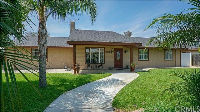 Price Just Reduced! This beautiful Corner Lot Horse property home is move-in ready! Offering 3 bedrooms and 2 full baths 1,856 SQFT with living room, family room, and recently remodeled kitchen with white cabinets and granite counter tops. Adjacent to Kitchen you'll find Family room (converted garage) with plenty of space for entertainment and separate laundry room. Roomy master bedroom with master bath. Redwood patio with Brick flooring/ cement combination with plenty of shade. Play area sits on top of Turf. Garage/ Shop approximately is 1,700 SQFT. City Living in Rural Area; near by River Riding Trails, shopping centers, Schools, and 5 minutes from In-N-Out Burger.
