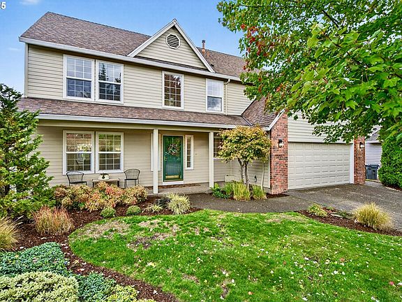Lovingly cared for by the original owners, this home sits on a level, flat lot at the end of a cul-de-sac. A welcoming covered front porch provides a charming entrance to this move-in ready property. Inside, the entryway opens to a formal living and dining room, while the great room with a fireplace and built-ins overlooks the expansive fenced backyard. The oversized bright kitchen includes new appliances, a built-in desk and a large breakfast nook. New interior paint and light fixtures enhance the updated feel throughout the home. Upstairs, discover four bedrooms, including a primary suite with double sinks, a soaking tub and walk-in closet. The fourth bedroom is ideal for a bonus or media space. This home lives large, with spacious rooms and abundant storage throughout. The backyard offers plenty of space for gardening, entertaining and play. Additional updates include the roof, siding, furnace and water heater with a back up heat-pump included.Located in desirable Wilsonville Meadows, near schools, shopping and freeways, this move-in ready home combines elegance, comfort and functionality. Don't miss out on this outstanding opportunity.