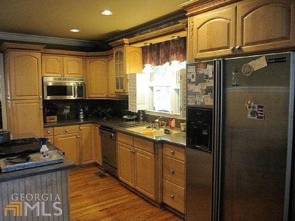 Stunning well maintained 3 bedroom 2.5 bath home with beautiful cultured stone accents on a private level lot! This home features a master on the main, HUGE kitchen with corian countertops and center island, hardwood floors on the main level and custom bar room, stone fireplace, Mother in law/ Teen suite in detached garage has finished upper level complete with kitchen, living area, bedroom and full bath!
