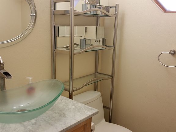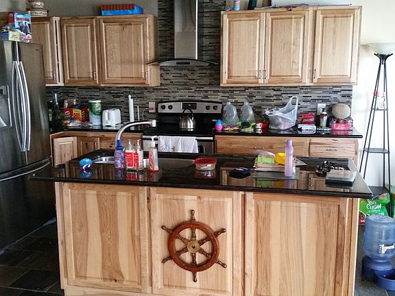 Over 1,700 finished square foot townhome in beautiful lake community w/nautical architecture & mature landscape. 2 bedrooms w/walkout closets & full bathroom on upper level. 1 nonconforming bedroom and 3/4 bathroom in fully finished basement. Remodeled kitchen includes custom granite counters, brand new hickory cabinets, and rustic slate floor. Dining room includes a skylight and expansive 8 foot patio door leading to balcony deck. Living room has gorgeous birch hand-sanded flooring and views of the lake. Upper level has vaulted ceilings and even better views of the lake through the trees. The upper level is primed to be remodeled to the specifications of its future owner, and some trim work to finish off the main level. Kitchen will include white kitchen appliances at closing. Stainless steel kitchen appliances are not included in the sale unless specifically agreed to as such. Excellent rental property.