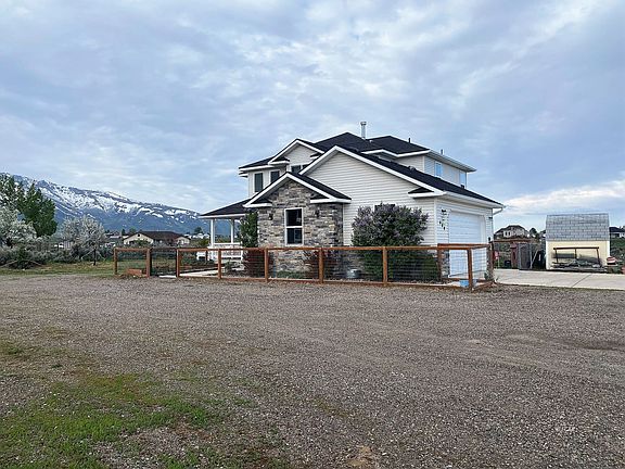 The unique grand floor to ceiling entry of this bright and inviting home is situated on just over 2 acres in Spring Creek with the picturesque Ruby Mountains as a backdrop. Featuring 4 bedrooms and 2 1/2 bathrooms, this home offers comfortable living space with upgraded granite counter tops throughout. The bedrooms with 2 full bathrooms are located on the upper level of the home. The main level features a pellet stove with an open floor plan, hard wood floors and sliding glass door that leads out onto the back deck making this home perfect for gathering with family or entertaining. Outside you will enjoy a mature yard with a fully automated sprinkler and drip system and also lies on the equestrian trail, making a walk in the summer or cross-country skiing in the winter as easy as stepping right out your own back door. The mostly finished basement is a large spacious area and also features a ready to finish bathroom. The backyard is fenced. The property also has an (8' x8') storage shed and chicken coop staying for the new owners. Seller is related to the listing agent.