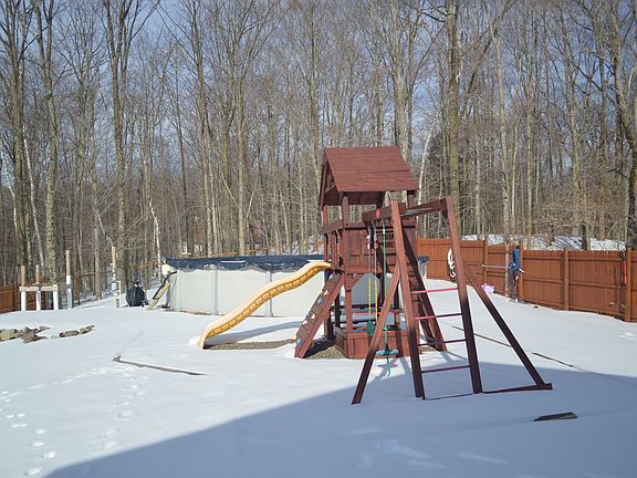 Impeccable, like new, colonial boasting 4 bedrooms, 2.5 baths, HUGE over sized 3 car, and SIX acres! This home has a spacious master bedroom with garden tub in the master bathroom & walk in closet. Enjoy these impressive grounds which include a large fenced in yard with play set, sunset deck views overlooking total wooded privacy, a small creek, & garage with pellet stove, propane heat, & work space. Large walk out basement with wood stove. USDA eligible, own this home with 0% down payment, if qualified!