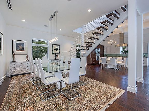 Modern, sleek and custom-built, this home is perfectly situated to allow for a sprawling, spacious backyard with indoor/outdoor living as inspiration for the design. Large picture windows frame the front entry for light to fill the rooms and offers a dramatic entry for guests who will immediately draw upon the luxurious marble foyer perfectly detailed with hickory flooring insets. The contemporary kitchen is a chef's dream and offers great space to create while opening seamlessly to the dining area, designed for entertaining. The easy living floor plan provides a spacious master suite and office on the first floor and 3 private guest rooms on the second with access to the amazing rooftop deck, perfect for sunrise and/or sunsets. All centrally located with easy access to the beach, downtown and everything Naples is best known for, this 2015 home is your next Naples paradise.