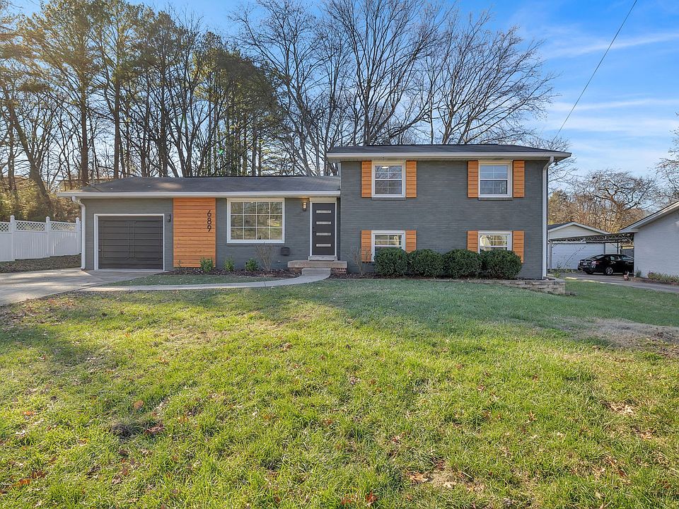 Welcome to your Mid-Century masterpiece!! This stunningly renovated 5 bdrm/ 2 bath home, nestled in the heart of Crieve Hall / Whispering Hills combines the allure of Mid-Century design with modern functionality, style and sophistication. Step into the light filled great room with oak hardwoods & modern finishes. A beautiful kitchen features quartz countertops, stainless appliances, and a chic breakfast area, perfect for culinary enthusiasts and casual gatherings alike. The upper-level hosts three large bedrooms, a double vanity bathroom meticulously updated, showcasing contemporary fixtures & finishes. Descend the stairs to discover a private retreat on the lower level—two additional bedrooms and bath provide versatile spaces for a home office, primary bedroom or game room. Step outside to the sprawling backyard & sip morning coffee on the deck or host gatherings under the stars. Professionally designed with great schools, parks, dining, and entertainment options nearby, Welcome Home!