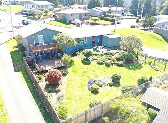 Charming hilltop house with a view! West facing home overlooks the stunning Umpqua River. 3 bed 2 bath plus large family room for entertaining. Fully fenced back yard with multiple patio areas to enjoy. Deck off master adds elevated viewpoint from home. Nicely landscaped backyard with mature rhododendrons. Finished double car garage plus additional parking. Located close to hiking, fishing, and local beaches. A must see to appreciate.