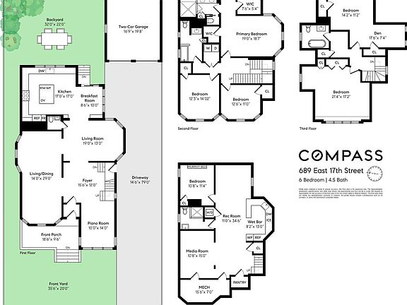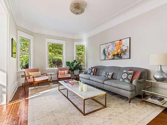 Welcome to your dream home on East 17th Street, Brooklyn, NY, where elegance meets modern sophistication in the heart of enchanting Ditmas Park. This meticulously renovated 6-bedroom, 4.5-bathroom residence is perfectly situated opposite a beautifully landscaped esplanade, offering a serene and lush setting. The gracious entry foyer showcases the sprawling open plan and abundant natural light of the parlor floor, offering views into each room as well as a direct sightline through sliding glass doors to the backyard. An entertainer's dream and ideal for family life, this floor's options and versatility are endless. The sunny music room, with windows on every wall, is the perfect size to accommodate a grand piano. The living/dining room features two bays of windows, more than enough space for a generous seating area and a dining table for six or more, flowing into another large living/family room with a convenient powder room. The piece de resistance is the dreamy, custom kitchen and breakfast room. A true chef's delight and the hub of the home, oversized windows connect you to the outdoors and fill the space with breathtaking light. Top-of-the-line kitchen finishes include custom cabinetry by Jewett Farms with walnut drawer interiors, unlacquered brass hardware, paneled appliances, and heat- and stain-resistant Silestone quartz countertops. The luxe appliance suite includes a Wolf dual-fuel 36" range (gas stove, electric oven), Miele XL plumbed combi convection steam oven, Sub-Zero fridge/freezer with ice and water dispenser, Bosch dishwasher, Sharp drawer microwave, and dual-zone Vinotemp wine fridge. Bonus features include an Insinkerator garbage disposal and Waterworks faucet/pot filler. The sunny breakfast room, perfect for casual dining, has huge windows and sliding glass doors leading to the beautiful backyard. A wall of floor-to-ceiling custom cabinetry provides even more storage. The second floor houses the spacious primary bedroom, easily accommodating a king-size bed and furnishings, with two custom walk-in closets and a stunning en-suite bath. Primary bath finishes include a Calacatta marble double vanity, Ralph Lauren mirror sconces, Calacatta marble tile in the windowed shower, Kohler hardware with double shower heads and rainfall feature, and custom built-in linen closets. This floor also includes two additional, well-sized bedrooms, a full bath with a Kohler cast-iron tub, and a convenient laundry room with full-size front-loading washer and dryer, built-in hanging rack, and wall-mounted, fold up ironing board. The third floor has two additional spacious bedrooms and another full bath with a clawfoot tub. The finished basement was fully excavated to increase ceiling height to 7'9", waterproofed, insulated, and outfitted with hurricane-proof, double-glazed windows that bring in beautiful natural light. This fantastic bonus space includes a cozy screening room, home gym, a bedroom with a built-in Murphy bed doubling as an office, a full bath with shower, a large storage closet with W/D hookup, and a full kitchenette/bar with paneled appliances, including a floor-to-ceiling Sub-Zero dual-zone wine fridge, Sub-Zero refrigerator drawers, Scotsman ice maker, Bosch dishwasher, and Insinkerator garbage disposal. All new double-glazed windows throughout the home, full insulation, and a high-efficiency boiler make this home as energy-efficient as it is luxurious. Heating and cooling are managed by four zones of radiator heating and five zones of central AC. Yamaha built-in speakers are installed on the parlor floor and in the basement, with Bose outdoor speakers for the backyard. Nearby, Newkirk Plaza and Cortelyou Road feature an array of shopping and dining options, along with the B & Q trains for easy access to Manhattan.