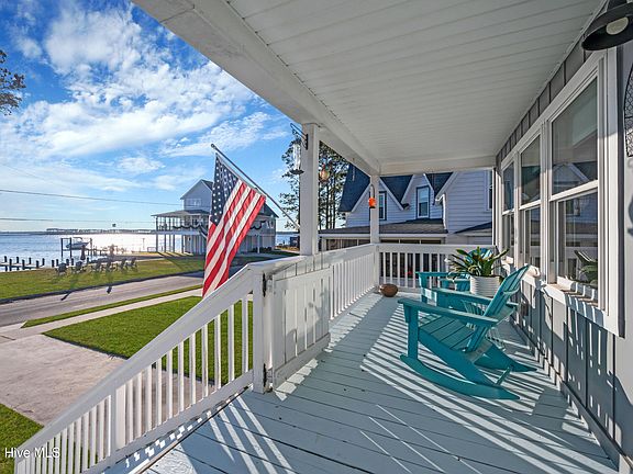 Step into a world of serene coastal living with this beautifully renovated 3-bedroom, 3-bath waterfront home in Belhaven, a charming, historic waterside town. Offering elevated waterfront views of the Intracoastal Waterway from the front porch, this home is your perfect escape to nature's beauty. The additional waterfront lot across the street, featuring a private concrete pier, overlooks the breakwater and provides a front-row seat to spectacular sunrises and sunsets. Enjoy boating, fishing, and crabbing right from your doorstep. Inside, the home seamlessly blends timeless character with modern comfort. The spacious, well-appointed kitchen opens to a bright dining and living area, all with stunning water views. The first floor hosts the primary and secondary bedrooms, each with en-suite baths. Upstairs, a versatile, expansive space awaits—ideal for an additional bedroom, office, or combination room, complete with its own bath. Located in the heart of Belhaven, this home offers easy access to award-winning restaurants, boutique shopping, local art galleries, and more. Hop on your golf cart for a quick ride to dinner or to explore the town's laid-back atmosphere. Just steps away, the newly renovated River Forest Manor features a marina, restaurant, and pickleball courts. A short stroll brings you to the town boat launch, a prime spot for regional fishing tournaments, and the nearby town park, perfect for family fun and outdoor relaxation. This is more than just a home; it's a lifestyle. Make it yours today!