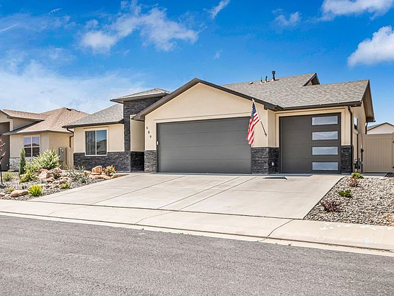 Beautiful almost new construction in northeast Grand Junction offers modern sleekness with fine detailing throughout! Stepping into the home, you are greeted with a modern open concept design. The home features durable Luxury vinyl plank flooring through out, a modern gas fireplace, and an upgraded sliding glass door leading to the covered patio. The kitchen features a beautiful full slab granite countertop with excellent storage, backsplash and a super roomy walk in pantry. The shaker style cabinets and stainless steel appliances provide a clean and modern look. Your bedrooms and baths are equally impressive with window coverings, tiled showers with frameless glass enclosures, and modern finishes. The xeriscaped front yard provides a beautiful and low maintenance yard where you can relax. Back yard is a clean canvas that can be design to your specific needs!! Topping everything off is an oversized 3 car garage with an extra garage door that backs to a concrete pad on the back yard, great for toys!!! Adjacent mud room with an upgraded utility sink and washer and dryer included. Many electrical upgrades have been done, extra windows were added during construction, too many upgrades to list. This gorgeous property is a place you will be proud to call home. It won't last long, so schedule your showing today.