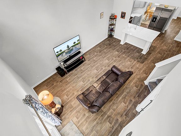 FIRST FLOOR OWNER'S SUITE! This Marion floor plan, in Meridian Lakes of Cane Bay, offers an open floor plan with soaring high ceilings that offer loads of natural lighting. This well-kept, meticulously maintained 2020 home is turnkey, ready and waiting for its new owners. Open your front door, look at the sight line to the family room! Be greeted by the separate dining room to the right that is large enough to hold your family and friends holiday meals or Super Bowl get togethers. This chef's kitchen boasts white, with gray marbling, quartz countertops and subway tile backsplash which were installed after closing. You will enjoy beautiful stainless-steel appliances and an elegant, oversized peninsula that offers a spacious area for prepping meals and entertaining.The open concept living space flows out onto the screened-in porch, offering even more space for easy living. Beautiful luxury vinyl plank flooring flows throughout the first floor warmly complementing the calming gray upgraded cabinetry in the kitchen. There is an ample sized powder room under the stairs and you can find an enormous pantry next to the kitchen. The expansive owner's suite is so handy being located downstairs. It features wonderful natural lighting coming in the large windows, a tray ceiling and carpeted floors. The owner's ensuite is generously sized and offers a double vanity with matching quartz installed in the kitchen, a super shower, and an abundant walk-in closet. Walking up the carpeted steps you will find two additional spacious bedrooms with sizable walk-in closets. Just at the top of the stairs, there is a perfect office/reading nook. The loft is massive and is a great area for a home office or game room. The laundry room is conveniently located upstairs and you will also find an ample full guest bath. The guest bath has also had the countertops replaced with the sparkling white quartz with gray marbling. This home is still under the builder's 10-year warranty. The lawn maintenance, exterior washing, landscaping, and pest control are covered by the HOA. This gives you more time to enjoy the world-class, multi-million-dollar amenities in the community. Just a short walk/ride from your home, you'll find the amenities center with a zero-entry pool w/ water features, a bocci ball court, horseshoes, playparks, a fire pit, a dock on the pond, access to the 300-acre lake system and lots more to do. There are miles of trails throughout Cane Bay for walking the dog, jogging, evening walks, and golf carting. Don't miss out on this fantastic opportunity to own an almost new home in this highly sought after community. Schools, Publix, Starbucks, many restaurants, the YMCA, and much more are all close by. Set up a showing today to view your new home!