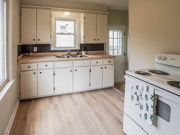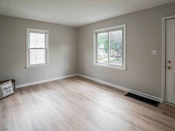 This charming ranch in Firestone Park is a must-see for anyone starting out or looking to downsize! The cozy layout includes easy-to-maintain vinyl plank flooring and neutral paint colors, making it a breeze to match your decor. The living room is filled with natural light, creating a warm and inviting space. The kitchen is both efficient and practical, with ample cabinet storage and a handy side door leading to the driveway. Down the hall, you'll find two comfortable bedrooms and a full bath with tiled walls and built-in linen storage. The full basement offers plenty of room for storage and laundry hookups. Outside, there's ample off-street parking in the driveway, leading to a detached one car garage and a spacious backyard. Nestled on a quiet dead-end street, this affordable home is conveniently close to everything you need. Schedule your showing today!