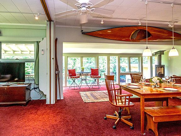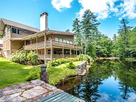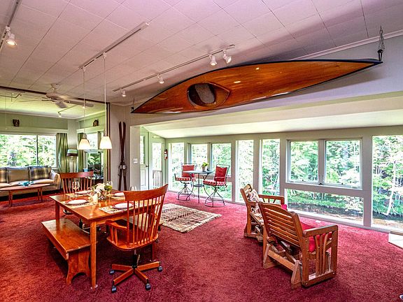 This North Conway Village condo is in a beautiful setting just 1 mile from Cranmore Mountain Ski Area. If you are tired of hauling your gear up every weekend this is the perfect spot in a peaceful setting near skiing, shopping and in town restaurants. Snowbirds who are down South in the winter but want a place to come home to in the Summer and Fall will also love this easy to maintain home. No expense was spared in the high end kitchen that has gorgeous cherry cabinetry, stainless appliances, granite counters, and a chef’s preferred gas range, open to the living/dining area. There are big windows facing Kearsarge Brook, beautiful in all seasons. The covered porch is a favorite spot for morning coffee and you will love curling up by the Jotul gas heat stove. There are two spots for sleeping, a primary bedroom and a second bedroom, currently used as a den, with a door that folds into the wall for privacy. This room has a large closet, two walls of windows and many floor plan possibilities. The home has two minisplit heat and A/C units, laundry in the common area, and is in a small building made up of vacation homeowners and primary residents. There is a storage/utility closet outside the unit and an attic with drop down stairs for easy access to seasonal items. Another cool feature about this building is that all of the living space is on the quiet part of the building facing the brook, the lawn and the wooded view. Sold fully furnished. A walkable, in town condo with a view!