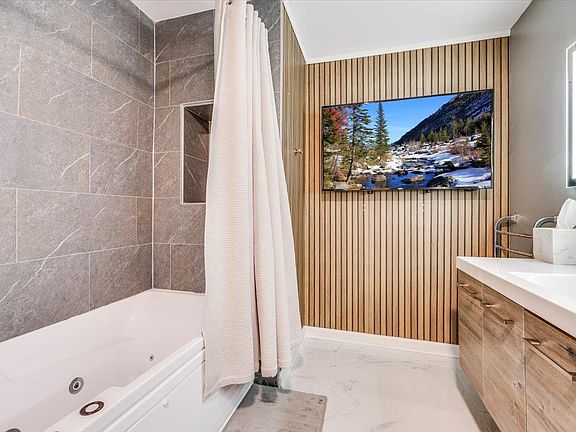 Newly renovated in 2024, the apartment includes modern finishes including a brand new white quartz kitchen countertop, glossy ceramic backsplash, jacuzzi tub and luxe wall designs.