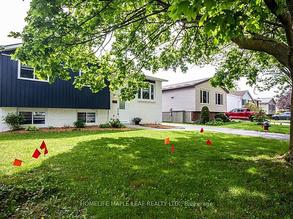 This beautiful raised bungalow home with 3+1 bedrooms and 2 full bath is situated near shopping centres, schools and downtown. Fully renovated home with anew water heater, sump pump, HVAC, all light fixtures, rain gutter replacement, paint, washroom tiles and vanity, washer, dryer and window blinds. Fully renovated into a modern home with a stunning kitchen, dining room and living room that leads to the large backyard deck. The detached garage has lovely epoxy flooring, shutter door and insulation, which allows for a great area to work on your car or working out in a home gym. Total sq.ft is 1910. The above and below grade sq.ft is 955 each level. Spacious entertainment area in the basement contains a gas fireplace, including a bedroom with large windows.