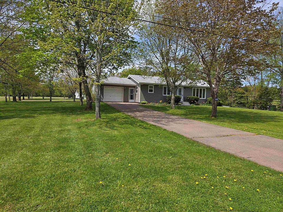 Here is a 3 bedroom bungalow with attached garage located on the edge of town of Alberton. It sits on a good size lot and has a large 12 x 16 shed. This property has had lots of updates over past few years like new roof shingles, new windows and siding 2 years, flooring, heating system, new elec rads and heat pump, new hot water heater, fridge and stove 7 years. There is a large living room with a propane fireplace very nice for colder times. There is a full bath on main level and basement has a half bath. The basement is mostly finished living space that is 12 x 20 in size. This is a very nice property in great condition and is waiting for new owners.