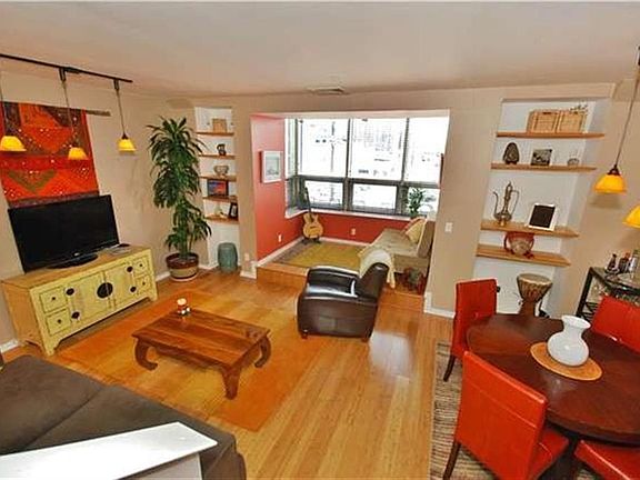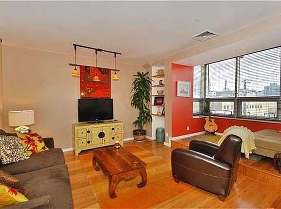 Spacious 1 bedroom loft with partial New York City View. Doorman and elevator in the building. The sunken living and formal dining room features fabulous natural light. Contemporary and elegant bamboo floors throughout. Central a/c, w/d. Garage parking avail in the building. Pet Friendly!