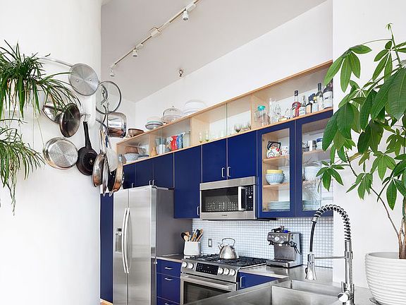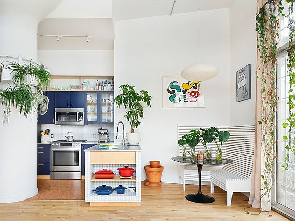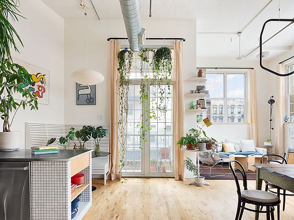 Finally, the Brooklyn loft you've been waiting for! Welcome home to unit 2I at 689 Myrtle Avenue, a stunning, sun-filled 1182 square-foot 2-bedroom plus office corner loft with soaring 13 foot ceilings. This one-of- a-kind airy home has been redesigned to maximize usage and features gorgeous open-sky views through oversized windows. Flooded with light, the sprawling living and dining area make this a perfect home for entertaining. Featured in Curbed New York, Unit 2I has undergone a complete custom renovation unlike anything you've seen. The renovated open kitchen was updated with marble-tiled island, stainless steel countertop and new Bosch appliances including dishwasher. Cleverly tucked away is a custom built breakfast banquet and best of all a balcony to step unto for fresh air. Up the redesigned staircase with built-in hidden storage, enter into your expansive master bedroom with large walk-in-closet. A second bedroom or den has approximately 6.5 ft ceilings and adds another 200 square feet of usable space. Additionally, this home features a separate bonus area perfect for your home office. Storage space is abundant throughout the unit with multiple walk-in-closets, overhead storage and an enormous pantry. With your own in-unit washer/dryer and central heating and A/C, this loft has all of the modern conveniences while still offering an exceptional and unique space. Low common charges and taxes make this unit an ideal investment. 689 Myrtle Avenue is a loft condo conversion with elevator originally built as a chocolate factory in 1947. The building was the first in Brooklyn to have a green roof; a serene outdoor space gorgeously landscaped with native plants and crickets, with 360 degree views of Manhattan and Brooklyn. The one-a- kind roof deck wraps around a private glass enclosed fitness center. With the G train at Myrtle-Willoughby only 2 and a half blocks away, Citibikes 1 block away and many bus routes nearby, 689 Myrtle Avenue is a convenient location at the crossroads of Bedford-Stuyvesant and Clinton Hill. Close to amazing neighborhood restaurants, bars, and coffee shops, we welcome you to make this very special unit your new home! Common charges include Fios internet. Buyer pays fliptax. The number of bedrooms listed is not a legal conclusion. Each person should consult with his/her own attorney to make a determination as to the number of rooms in the unit that may be legally used as a bedroom.