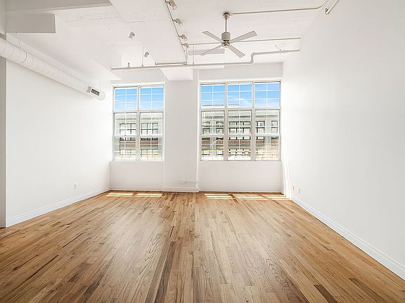 Live large in this character-filled duplex loft set in a former chocolate factory at the intersection of Williamsburg and Bedford-Stuyvesant. Soaring 13-foot high ceilings, exposed ductwork, and original concrete columns define the space, while oversized factory windows flood the home with natural light.