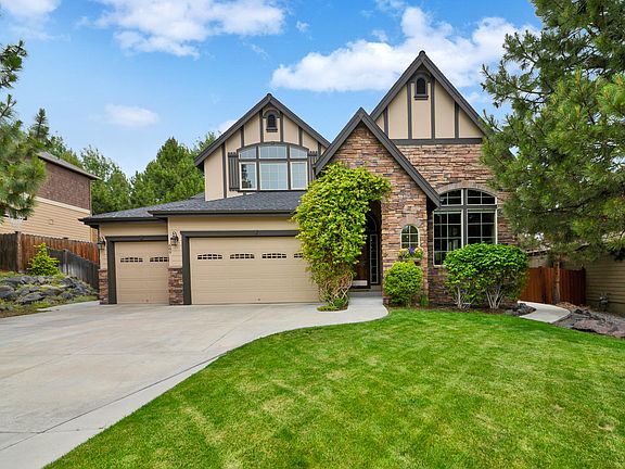 Welcome to 689 NW Powell Butte Loop. Cross the threshold and you are greeted with a wall of windows looking out to the lush backyard & signature Bend blue skies. The downstairs of this home hosts a cozy eat-in dining space in the kitchen, as well as a formal dining room, half bath, laundry room, living room with a built-in entertainment center, family room with a gas fireplace & the master bedroom. While in the kitchen you will quickly appreciate the solid surface counters, solid wood cabinets, convenient pantry, functional layout & easy access to the back patio. The large main level master bedroom has an attached bathroom suite with dual vanities, soaking tub, dual shower stall with bench seating, private toilet suite & walk-in closet. Upstairs you will find a full bath, 3 bedrooms & large bonus room with a gas fireplace. While outside, whether shooting hoops in the front, or gardening in the back, this .22 acre home site is the perfect place to make memories with family & friends.
