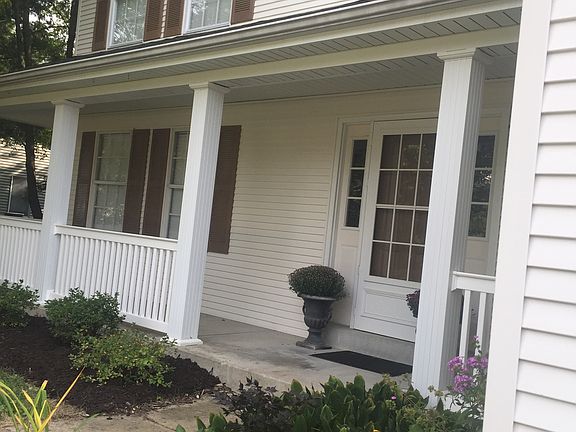 Lovely 2 story, 4 bedroom home has a serene setting with a nice size lot backing to woods. Inviting floor plan with Family Rm open to Kitchen/Brkfst Rm & many windows providing great natural light. Family Rm boasts a gas fireplace with remote on/off & a bay window showcasing wooded view of the back yard. Brkfst Rm bay walks out to the delightful screened porch which leads to a large composite deck perfect for enjoying those warm evenings. Versatile space in Living & Dining Rms makes entertaining a breeze. Luxury Master Suite has vaulted ceiling w/ceiling fan, walk in closet, separate tub & shower & 2 vanities. Fresh and updated look with all new light fixtures & painted throughout in 2019. Features: Vinyl siding & aluminum soffits & fascia, Walk/out basement w/ roughed in plumbing; Mn Flr Laundry; Updated Powder Rm & Mstr Bath; Vinyl Flooring 2013; New Carpet in 2013/2015. Wood floor in entry foyer and office. New stainless steel appliances 2013. New roof and HVAC system 2016. Vineyard's amenities include Club House, Pool & Tennis Courts