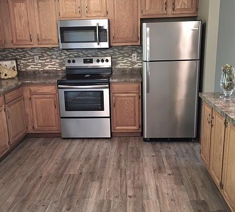 New, Newer, Newest! Everything has been replaced and updated. All NEW flooring (bye-bye bathroom carpet!) NEW matching appliances, NEW light fixtures/ceiling fans, fresh paint throughout (see ya later wallpaper!), new countertops in kitchen and master bath, LOVELY tile kitchen backsplash and plumbing fixtures. EVEN BETTER - new siding slated to be completed by June 20 (weather permitting) and has already been paid for! PLUS - the POOL is now open! NO MOWING! All YOU have to do is move in, put your feet up and relax! (and maybe work on your tan by the pool or on your patio?) Did I mention NO mowing?