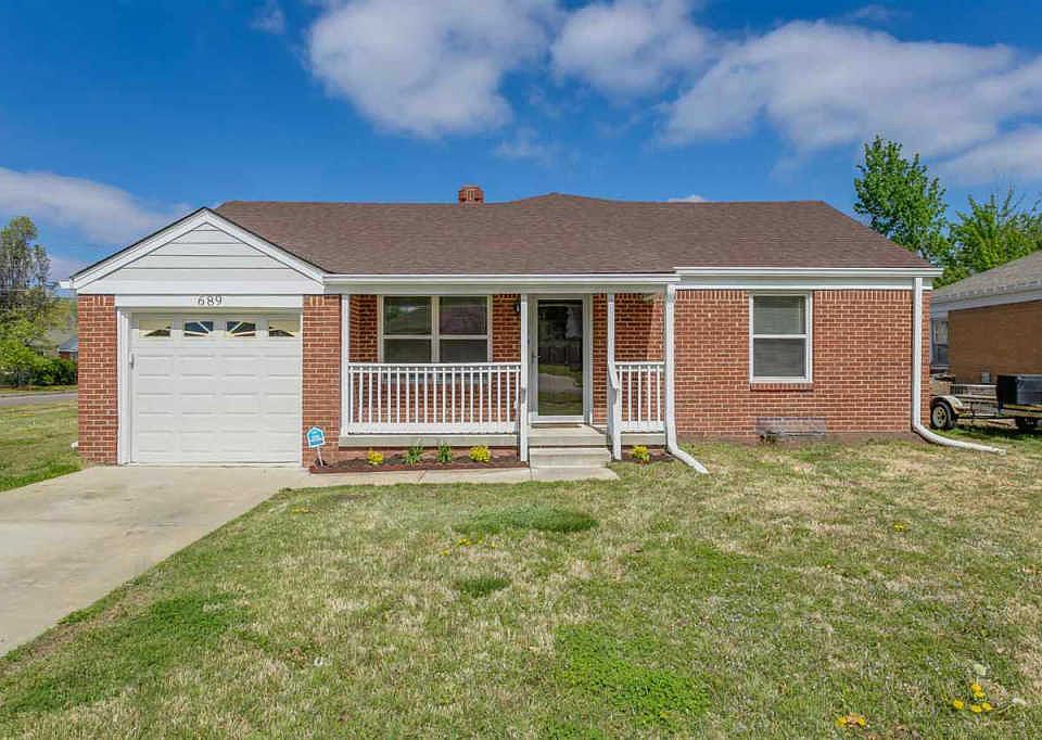 Come see this brick ranch home in east Wichita! With 3 bedrooms, 2 baths, fresh exterior paint, new carpet, and a great layout, you will love the space and features you'll find within. Located on a corner lot, pull into the drive and notice the cute curb appeal. Step up the covered front porch that has space for seating, and enter the home to find a living room with big picture windows and gleaming hardwood floors. The kitchen is a chef's dream, with a double oven and range with six burners, a heating lamp to keep food warm, and lots of space to cook in. The enormous dining room is open to the kitchen and it has space to accommodate a dining area and a seating area if you want to cook, eat, and entertain in the same room. The master bedroom has an en suite bathroom with a shower and updated vanity. Two more sizable bedrooms offer bright windows and more beautiful hardwood floors. A second full bathroom completes this great main floor. Downstairs, the unfinished basement provides plenty of storage space. Located close to Towne East Square, tons of shopping and dining options, and easy highway access, you've found a great home in a convenient location. Schedule your private showing today and check this one out before it's gone!
